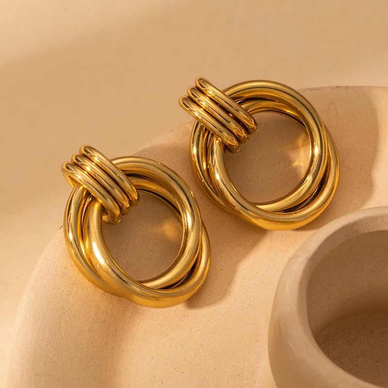 Geometric Plating Titanium Steel Ear Studs