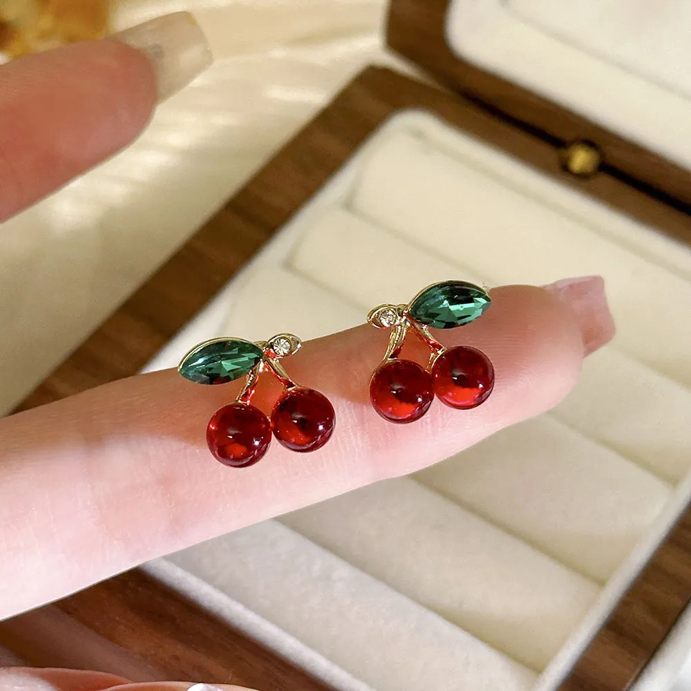 Sweet Cherry Artificial Gemstones Ear Studs