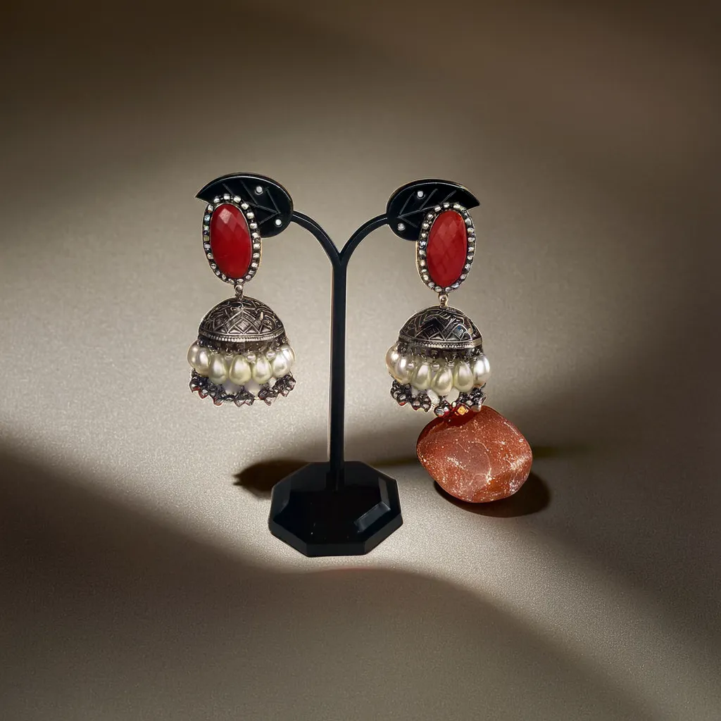 Textured stone oxidised jhumki