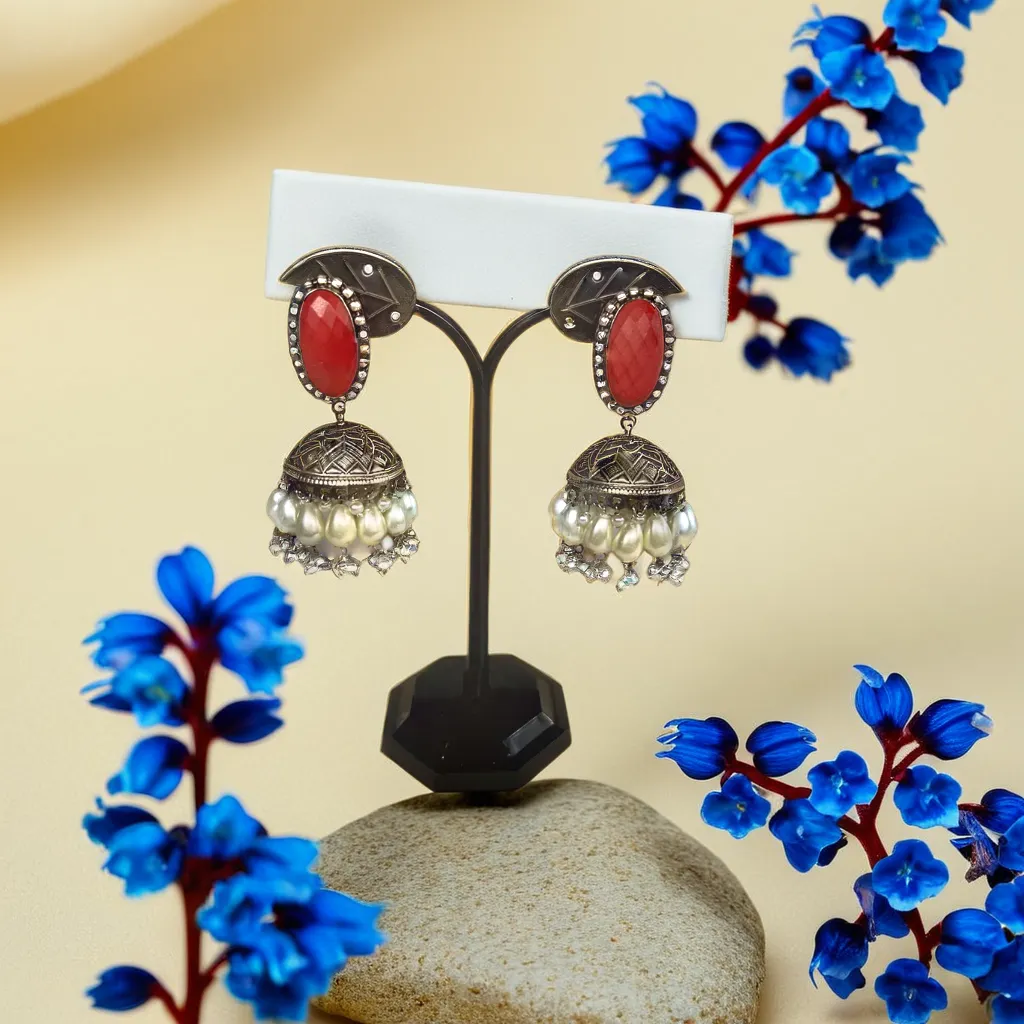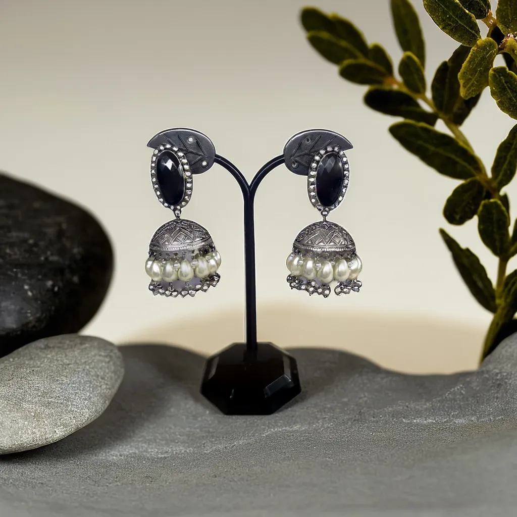 Turn heads with the allure of oxidized silver and timeless design in our jhumkas! 🔥